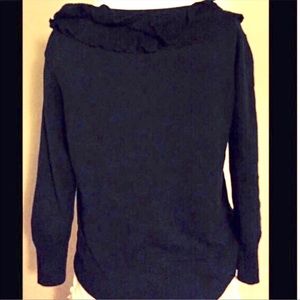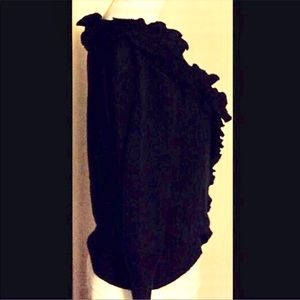 NWT navy blue Cremieux dress top. Ruffled around the collar that goes down into a deep v-neck and ruffles around the sides of the five buttons at the bottom of cardigan. Looks perfect with camisole underneath it and a pencil skirt. Material made out of 82% cotton, 16% nylon, 2% spandex.