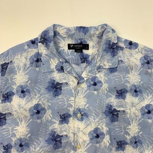 Cremieux Shirt Mens L Large Blue Hibiscus Floral Lyocell Button Up Hawaiian