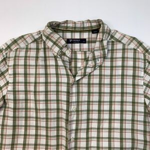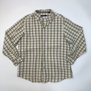 Cremieux Shirt Mens L Large Linen Blend Beige Plaid Long Sleeve Button Down