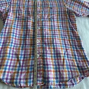 Cremieux Shirt Mens M Pastel Plaid 100% Linen Slim Long Sleeve Button Up Preppy Casual