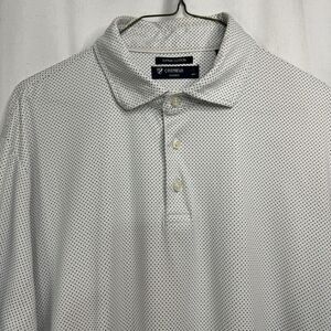 Cremieux supima cotton performance golf polo. Size XL with blue and black small polka dot print all over.