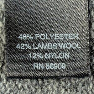 Thick and warm, with 42% lamb's wool. Dark gray, with ribbed neckline, hem, and cuffs. Excellent condition!