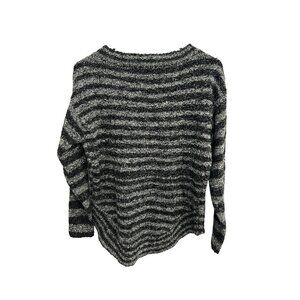 knitwear, cozy, relaxed, fall, winter, striped sweater, women's sweater, Cremieux sweater, wool blend sweater, grey black sweater, S size sweater, winter fashion, professional attire, long sleeve sweater, cozy sweater, soft sweater