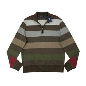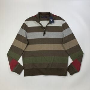 Cremieux Sweater Mens S Small Cotton Classics Striped 1/4 Zip Pullover Rugby