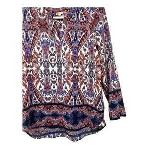 Cremieux Womens Blouse Multicolor Tunic Long Sleeve V Neck Pullover Medium