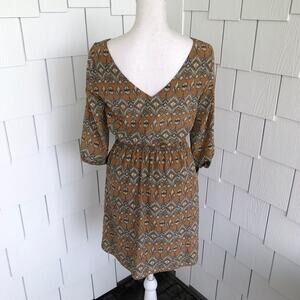 Cremieux Women's Tan Multi Cinched Waist Side Pocket Deep V-Back Dress sz XS