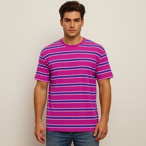 #CremieuxStyle #MensXL #StripedTee #StreetwearVibes #CasualCool #PoshFinds #Menswear #WeekendStyle #CottonComfort #MagentaMood #PreppyMeetsUrban