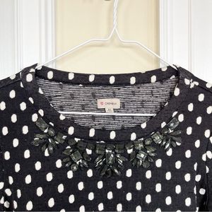 Cremieux XS Black White Pokadot Jeweled Neckline Long Sleeve Top