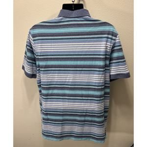 Cremieux mens polo shirt size XL stretch blue Purple striped side slit collared