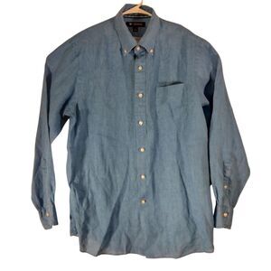 Cremieux shirt mens L Large blue 100% linen long sleeve button Daniel casual