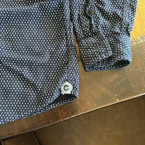 Classic Cremieux slim fit shirt navy with white pattern. EUC
