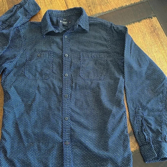 Classic Cremieux slim fit shirt navy with white pattern. EUC