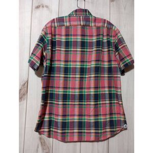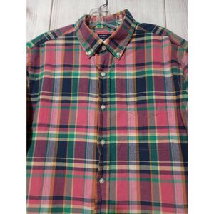 Cremieux Shirt Men's Large Pink Blue Plaid Button Front Short Sleeve