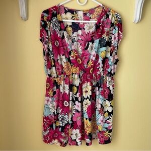 Crepas V Neck Sleeveless Women’s Size 1X in bright floral print