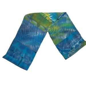 Crepe Silk Green and Blue Tie Dye Infinity scarf. Lovely lightweight double layered scarf in multi tonal blues and greens. In excellent condition .