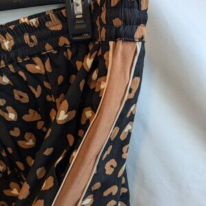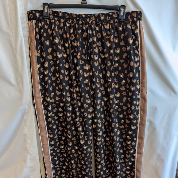 Crepe Wide Leg Pants Leopard Print with Contrast Stripe and Pockets XL