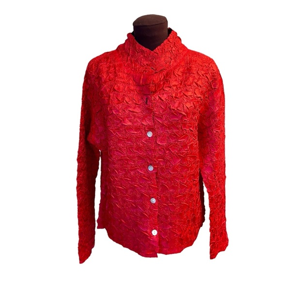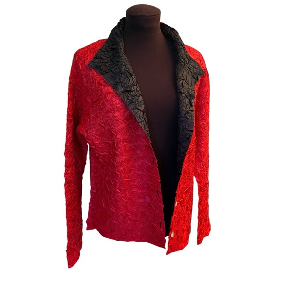 Crepey Crinkle Womens Reversible Button Front Textured Black & Red Jacket size M