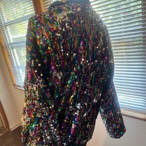 Cresay multi-color sequin zip front bomber jacket, size XL (85% Polyester, 15% Spandex)