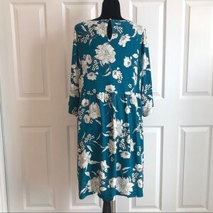 This teal floral dress by Crescent will be your favorite piece from Spring through Fall. The shape of this dress is “smock style” and drapes flawlessly like a swing dress. Looks good with booties, leggings, and jeans. The teal color is even better in person. Dress is fully lined. This piece is oversized, so you may size down. I am 180 lbs & 5’4” and fit a small through large (I prefer the large the best). Measurements for specific sizes available. See stock photo for fit.