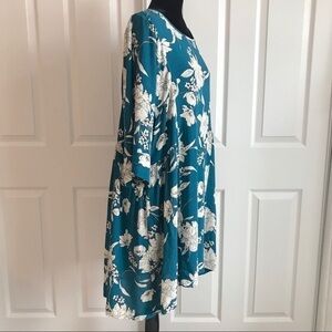 Crescent “Camila” Teal Floral Babydoll Swing Tunic Dress