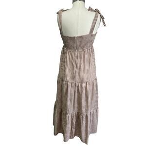 Crescent Cotton Gingham Tiered Midi Dress Tie Straps Cottagecore Sz Small