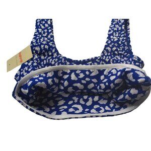Crescent Drive Crop Tank Bikini Top Womens XS Blue Cheetah Print Scoop Neck New