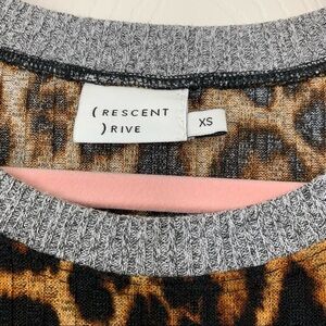 Crescent Drive Leopard Long Sleeve Knit Loungewear Top Size Extra Small