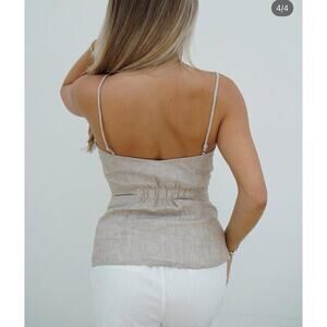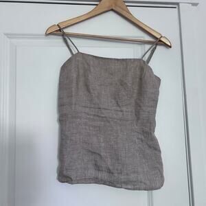Crescent Linen Spaghetti Strap Tank Top Women’s Small Beige Minimalist Coastal