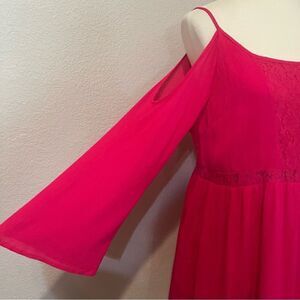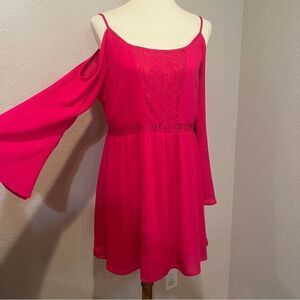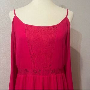 Crescent Magenta Babydoll Dress/Tunic Top Size L Cut-Out Shoulder Lace Peekaboo