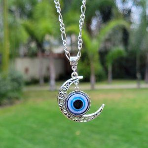 Lovely Crescent Moon Evil Eye Pendant Silver Plated. Chain 20". Pendant Height 1.5" ***BUNDLE AND SAVE***