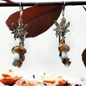 Moon Fairy Mushroom Earrings, Colorful Crushed Stone Cottagecore Earrings