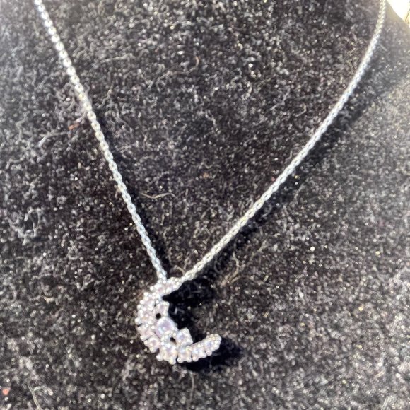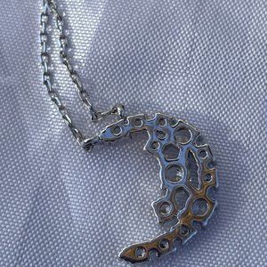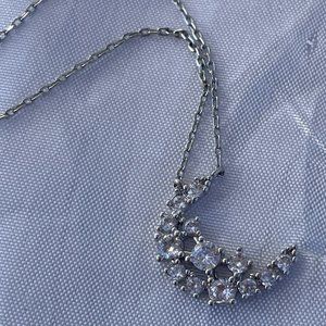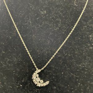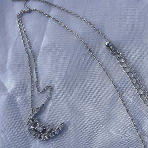 Sparkly moon. Crescent moon rhinestone necklace on a silvertone chain. Very pretty.