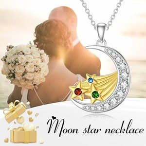 Introducing our exquisite Moon and Star Necklace, a symbol of romance, protection, and dreams. Crafted with love and attention to detail, this necklace features a delicate moon pendant representing tender affection, while the stars embody hopes and aspirations. With a height of 20mm and a 925 sterling silver chain measuring 18+2 inches, it's the perfect accessory for any occasion. Handmade with the highest quality materials, including nickel-free and hypoallergenic 925 sterling silver, this necklace exudes elegance and durability. Whether you're wearing it daily or for a special event, it's sure to complement your style and showcase your unique personality. As a thoughtful gift, this necklace conveys profound sentiments of love and protection, making it an ideal choice for expressing affection to your loved ones. To maintain its lustrous shine, simply use a soft cloth to wipe away dust and dirt and store it in a dry place away from hard objects. Embrace the power of love and tranquility with our Moon and Star Necklace – a timeless piece that will cherish memories for years to come.