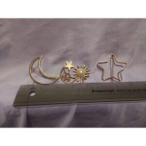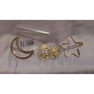 Crescent Moon Sun & Star Hair Clip Barrette Set Gold Tone Faux Pearl