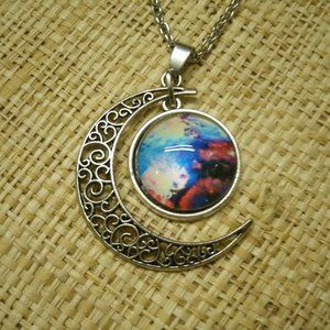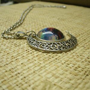 Crescent Moon with Nebula Cabochon Dangle Necklace