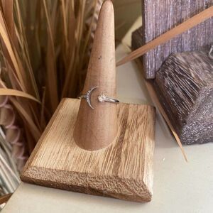 Crescent Moon Stainless Steel High polished Champagne CZ Ring Sizes 7,8