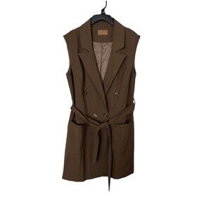 Crescent Sleeveless Vest Blazer Dress M Brown Twee Preppy