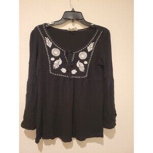Crescent Stitch fix Black Embroidered Gauze Boho Women's Top Size Small