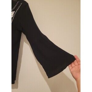 Crescent Stitch fix Black Embroidered Gauze Boho Women's Top Size Small Boho