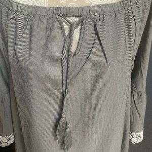 Loose elastic across neckline help this top hang nicely from the outer edge of your shoulder