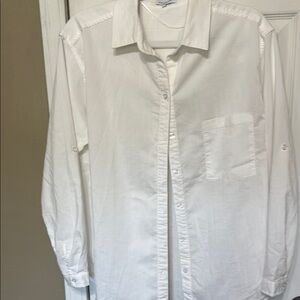This classic white button-down shirt by Crescent is crafted from a light, textured material, offering a crisp and polished look. Featuring a traditional pointed collar and long sleeves, it is a versatile wardrobe staple suitable for any occasion.