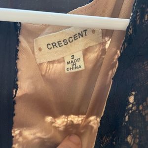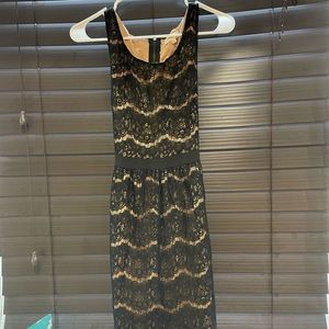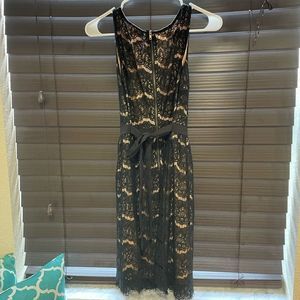 Crescent Womens Dress Size Small Black Brown Lace Overlay Sleeveless Waist Tie