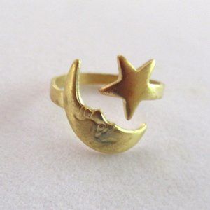 Pretty gold tone ring is a size 7. It can be opened a bit more, but that may detract from the design. This is a new item, never worn. Metal is brass. Ring box not included.