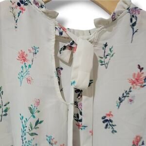 Cresent & Willough Floral Cap Sleeve Tie Neck Blouse Size Small