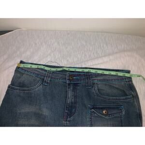 This Crest jeans Y2K blue skirt with crochet flowers is a perfect addition to your wardrobe. The skirt is made of denim material and has a solid pattern with a zip closure. It is suitable for both casual and workwear occasions and is available in size 13. The garment care is machine washable, making it easy to maintain.