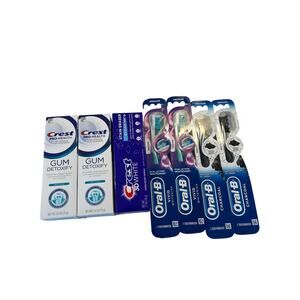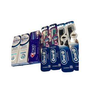 Transform your daily oral care routine with the Crest and Oral-B Oral Care Bundle. This comprehensive set includes three Crest toothpastes and four Oral-B toothbrushes, designed to keep your smile bright and healthy. New with tags, this set is ready