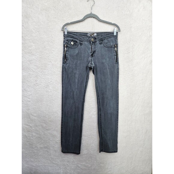 Crest Women Jeans 5/6 Gray Cotton Blend Low Rise Straight Slim Ankle Denim