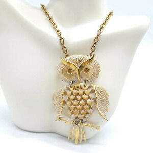 Crested Owl Pendant Chain Necklace White Enamel Bohemian Boho Topaz Vintage