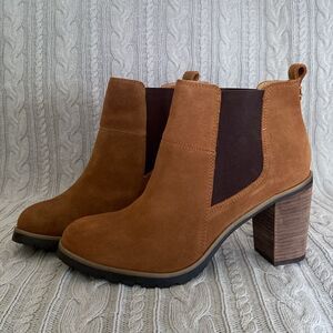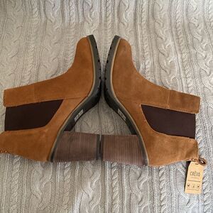 Crevo Alicia Brown Leather Suede Round Toe Block Heel Casual Fall Boots. Size: 11. New with tag, in the original box. Genuine leather suede upper. Memory foam inside. Block heel 3.5”. Very well made and durable comfortable and stylish. Smoke free & pet free home.