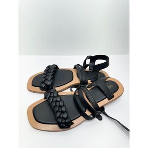 Crevo Bohemian Sandals Size 7.5 Black Leather Braided Strap Wraparound Closure